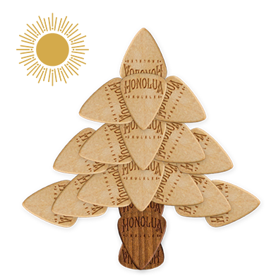 The Kohala has all of the aesthetic upgrades of the Mano, including solid top, maple binding, gold tuners, and dual strap pins, but it’s built with acacia wood instead of mahogany. Acacia is revered for its beautiful, full tone and we’ve added abalone-style trim around the body.